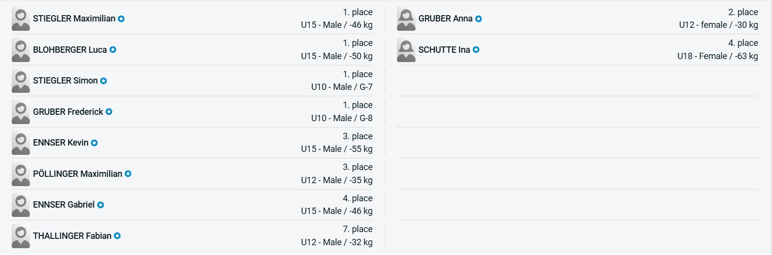 Unsere Kämpfer zeigten eine sehr starke Leistung und konnten insgesamt vier 1. Plätze mit Stiegler Simon U10, Gruber Frederick U10, Stiegler Maximilian U15 -46kg und Blohberger Luca U15 -50kg, einen 2. Platz mit Gruber Anna U12-30kg und zwei 3. Plätze mit Pöllinger Maximilian U12 -35kg und Ennser Kevin U15 -55kg gewinnen.